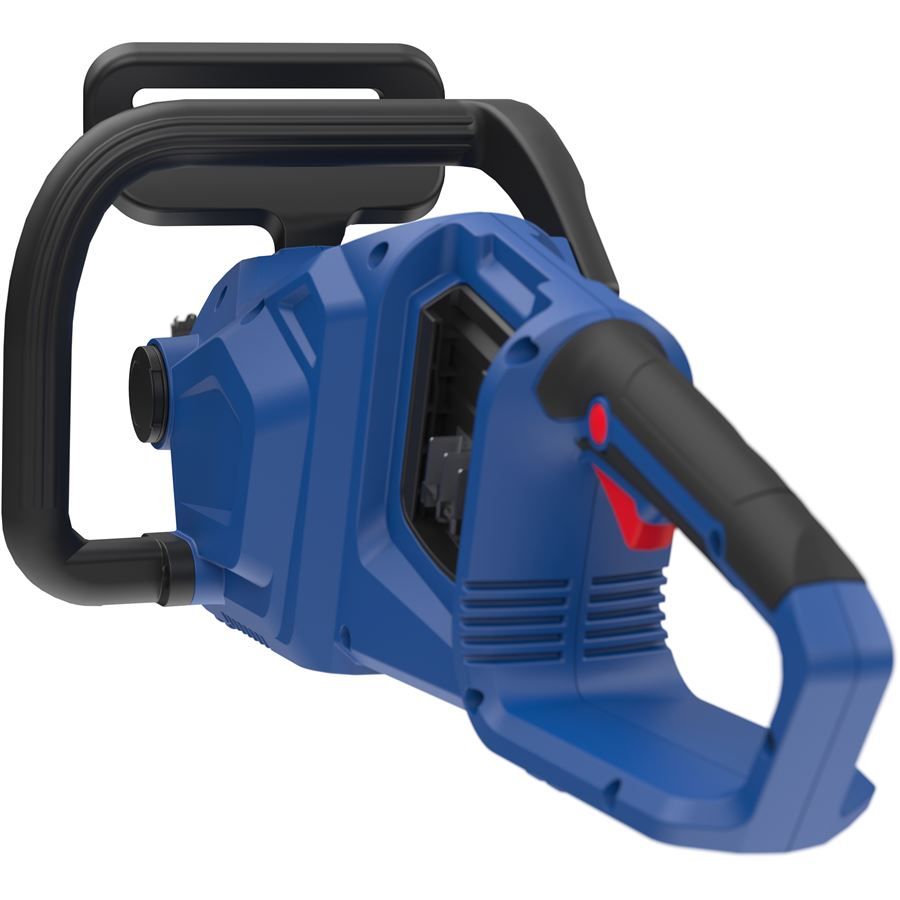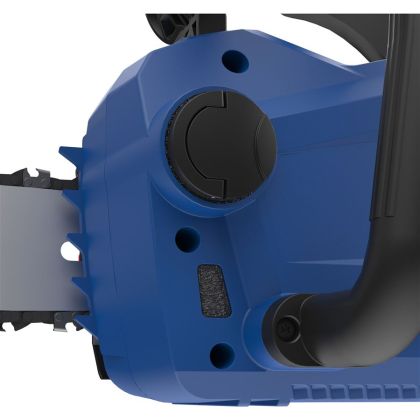 Konstrukce: plášť pily z tvrzeného plastu, ergonomicky tvarovaná rukojeť, olejová nádrž s průhledovým okénkem, zubová opěrka.