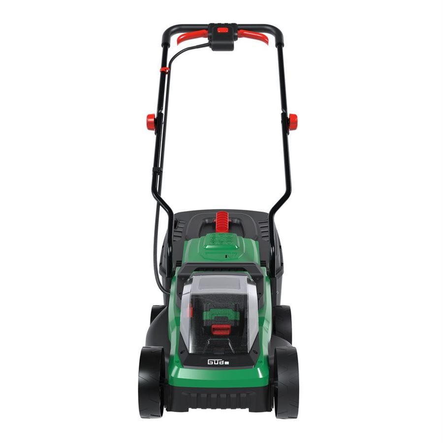 Akumulátorová sekačka GÜDE je lehká a obratná, vhodná pro malé a středně velké trávníky.