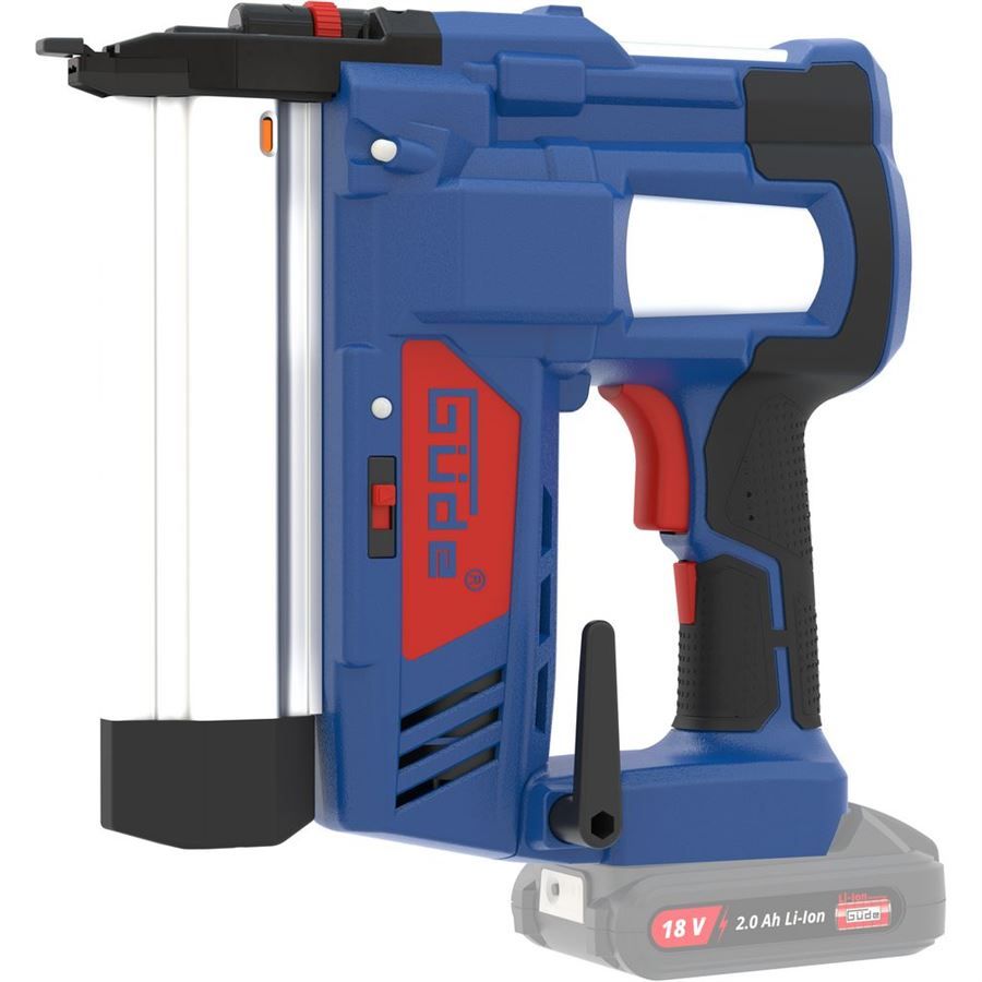 Robustní akumulátorová sponkovačka - hřebíkovačka, určená ke spojování nejrůznějších materiálů napevno nastřelovacími sponami nebo hřebíky.