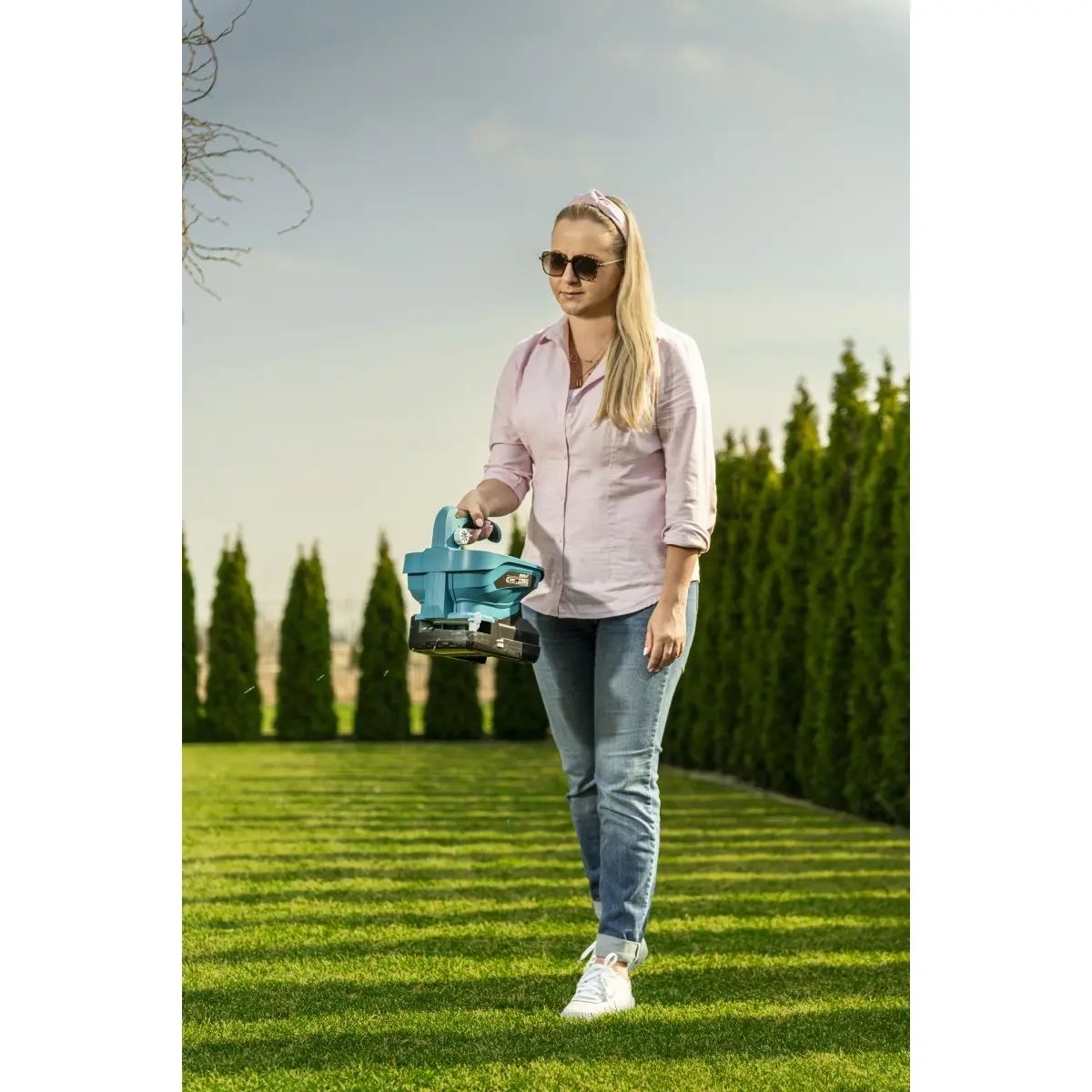 Otáčky: 900-2200 ot/min, 6 rychlostních stupňů, nastavení intenzity rozmetání, nastavitelná šířka rozmetání: max. 5 m, objem zásobníku: l, ergonomická pogumovaná rukojeť, napájení: 18V lithium-iontový akumulátor.