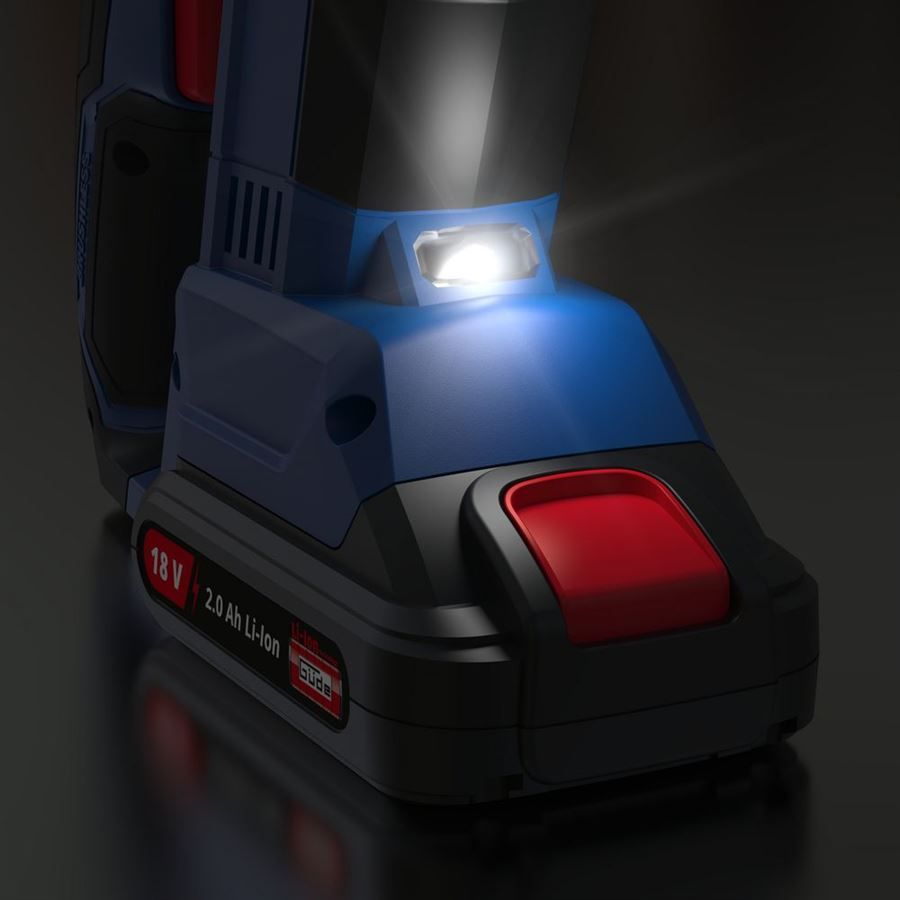 Pravý/levý chod, možnost vypnutí vrtání s příklepem, zastavení otáčení pro lehké sekací práce, LED pracovní světlo.