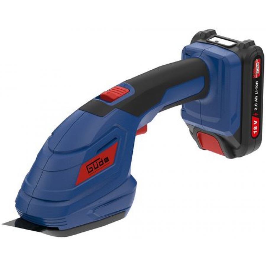Akumulátorové nůžky Güde, určené k zastřihávání okrajů trávníků nebo tvarování okrasných dřevin.