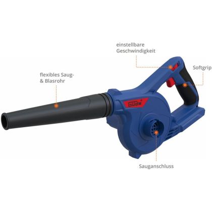 Konstrukce: skelet z tvrzeného plastu, ergonomicky tvarovaná rukojeť s vložkou SOFTGRIP, sací (foukací) trubice vč. bajonetového uzávěru.
