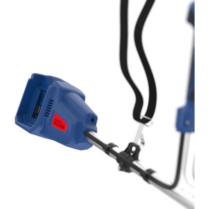 Praktický akumulátorový křovinořez Güde, určený k posekání přerostlé trávy nebo zaplevelených (obtížně přístupných) částí pozemku.