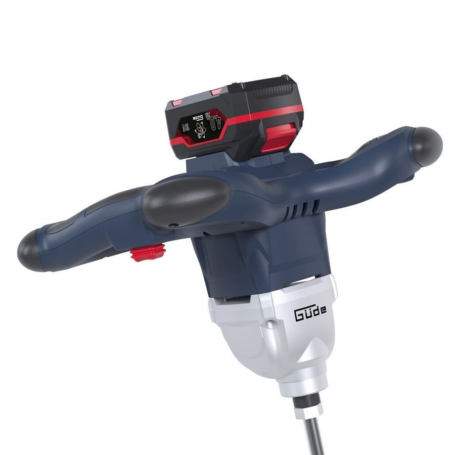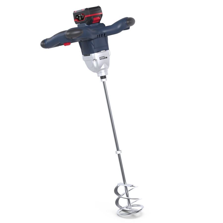 Akumulátorový míchač GÜDE pro rozmíchávání práškových stavebních hmot. Kompatibilní se všemi akumulátory a nabíječkami řady 18 V E³.