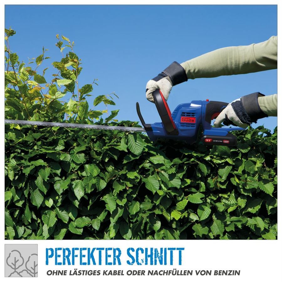 Praktické akumulátorové nůžky Güde, určené ke stříhání (zastřihování) živých plotů a keřů.