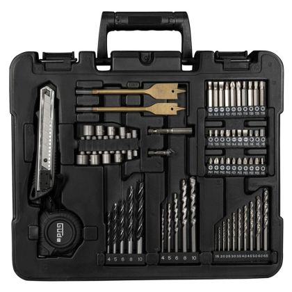 Kompaktní a výkonný vrtací šroubovák se sadou 126dílného kufru na nářadí ze skupiny 18V E³ akumulátorového systému.