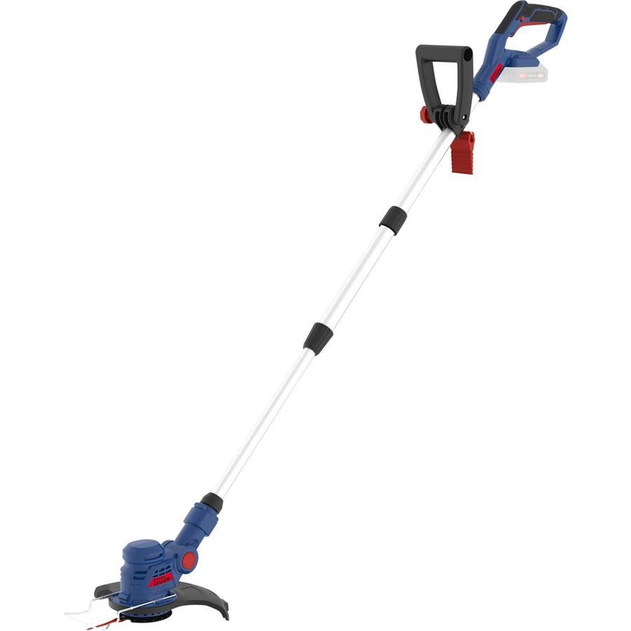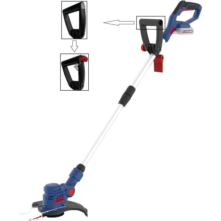 Akumulátorová sekačka Güde, určená k finálním úpravám zahradních trávníků.