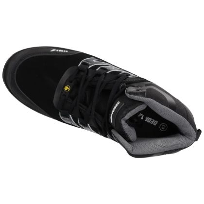svršek: hovězinová semišová kůže, kompozitová špička, pohodlná tvarovaná komfortní stélka, podrážka: PU/PU polyuretan s dvojí hustotou, antielektrostatické vlastnosti, systém tlumení nárazů, protiskluzová podrážka.