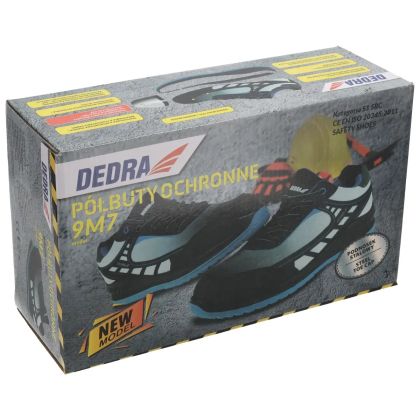 Materiál: tkanina; certifikát CE; norma EN ISO 20345:2012; ocelová špička; podrážka z PU/PU s dvojí hustotou; protiskluzová, antielektrostatická, polstrovaná pata; pohodlná, tvarovaná stélka; antielektrostatická podrážka.