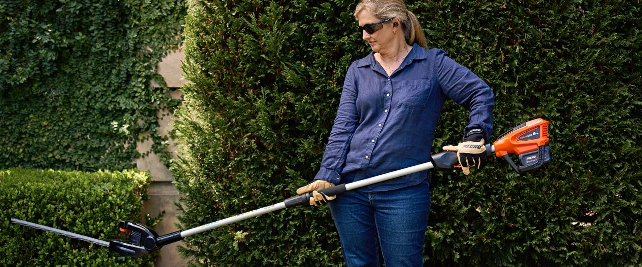 DHCA-310 je plotostřih na tyči navržený pro jednoduché a přesné stříhání jakéhokoli živého plotu. S celkovou délkou 246 cm a otočným nožem můžete snadno zvládnout vysoké a velké živé ploty s minimálním úsilím. Je schopen čistit husté keře nebo jemně tvarovat vaše živé ploty.