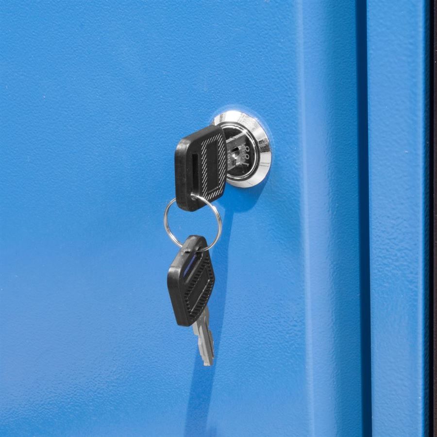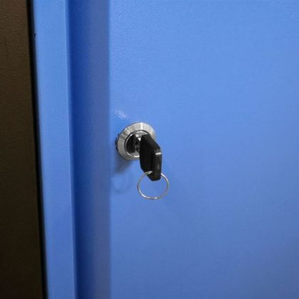 Vybavení: 5 zásuvek (-> d x š x v: 440 x 400 x 120 mm; max. nosnost: 20 kg, plně výsuvné - teleskopické vodicí lišty); uzamykatelná dveřová skříňka (-> d x š x v: 465 x 400 x 390 mm; dvířka s vnitřní výztuží a cylindrickým zámkem).
