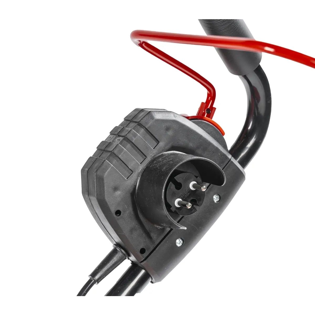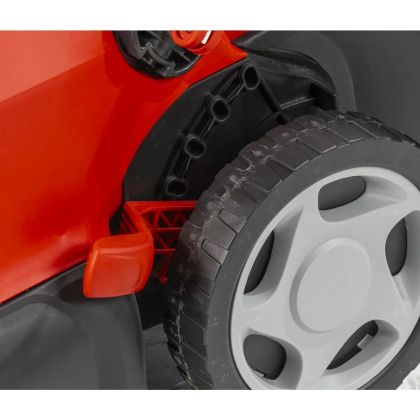 Výkon motoru: 1800W, otáčky: Šířka řezu: 3800 ot: objem: 40 l, elektrický start, zadní výhoz, sklopná rukojeť, nastavení výšky rukojeti, tichý provoz, velikost kol: 155 mm, 210 mm.