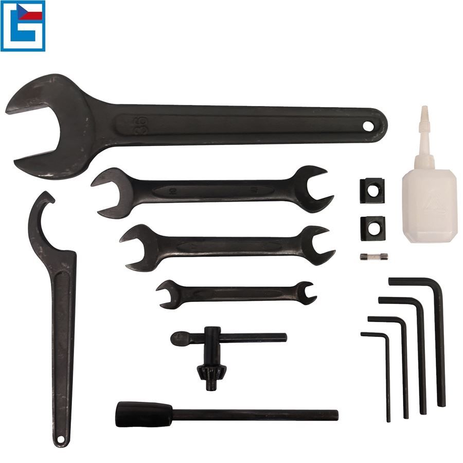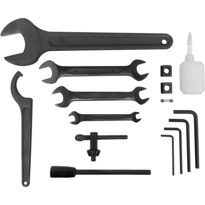 Příslušenství: fixační kolík pro aretaci vřetena, náhradní pojistka, ochranný kryt proti třískám, plastová nádržka na olej, šestihranné klíče, sklíčidlo