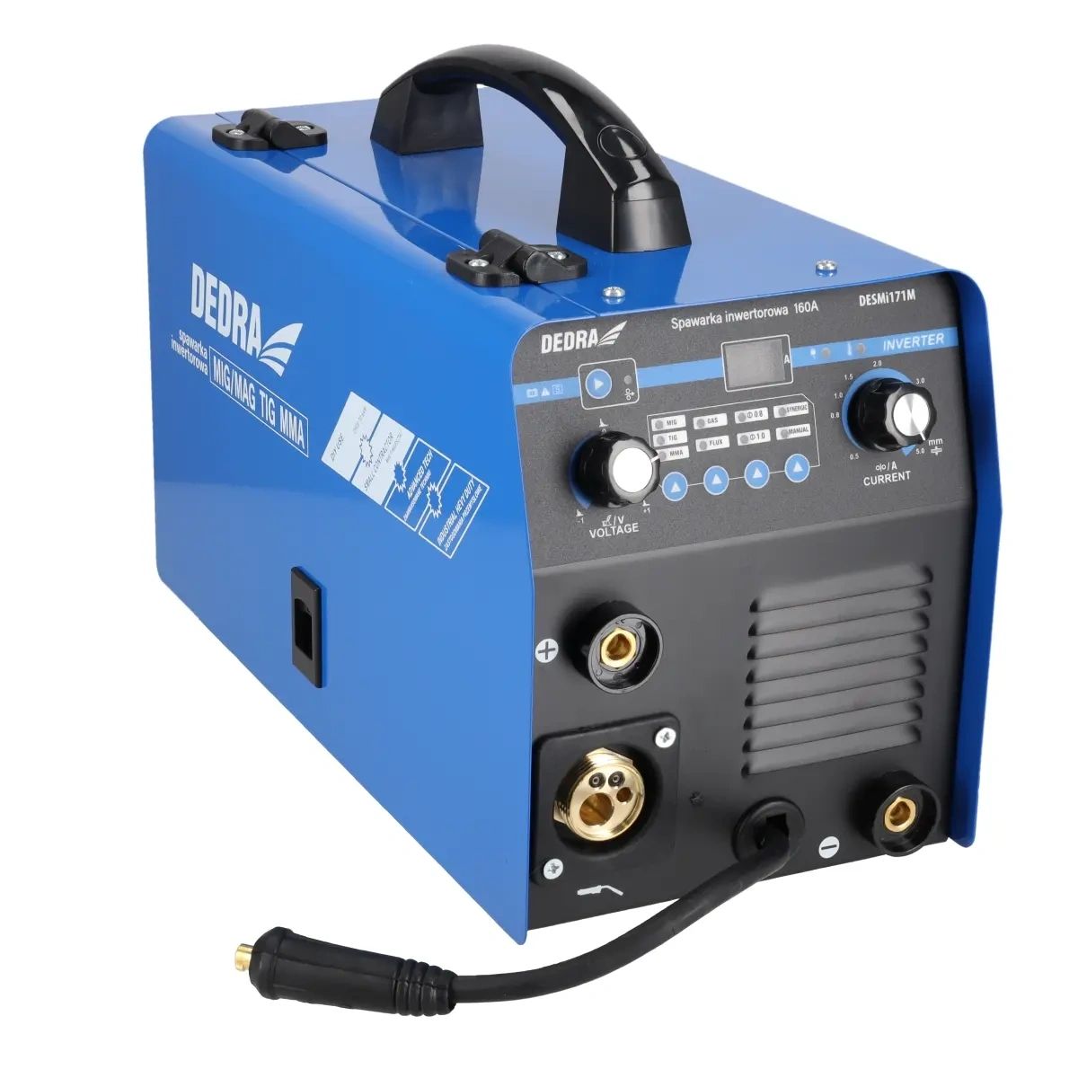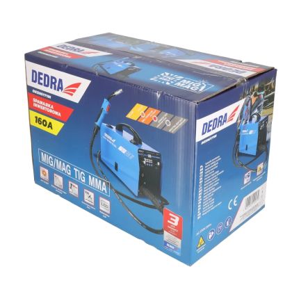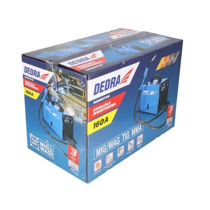 Určeno pro svařování obloukem metodou MIG/MAG v ochranné atmosféře, metodou MMA s obalenou elektrodou a metodou TIG LIFT s netavnou elektrodou. 230 V, rozsah regulace svařovacího proudu 40–160 A, IGBT, HOT Start – snadné zapálení oblouku, systém Anti Stick, Arc force – startovní nárůst svařovacího proudu, LCD displej.