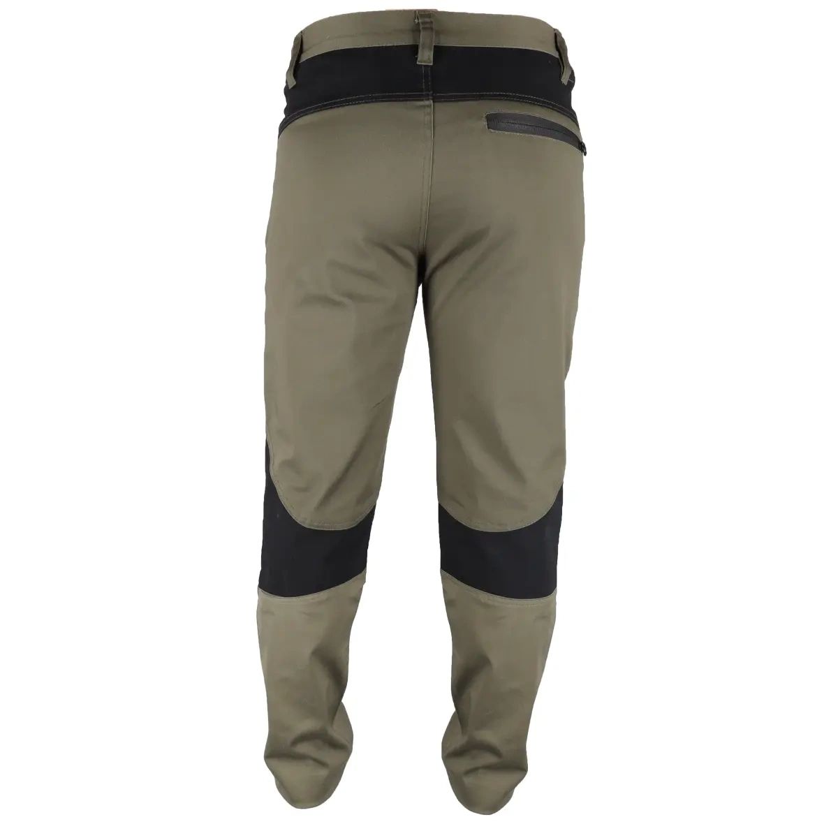 Materiál kalhot: 65 % bavlna, 33 % polyester, 2 % spandex, hmotnost 240 g; látka v oblasti kolen: Materiál: 96% polyester, 4% spandex, hmotnost 315 g; 3 kapsy na zip, elastická regulace pasu, úzký střih