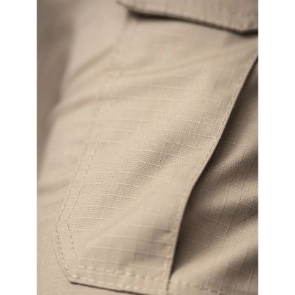 hlavní materiál: Materiál: 63% polyester, 35% bavlna, 2% SPANDEX, ušito z odolné rip-stop tkaniny, která poskytuje pevnou vazbu i pohodlí, hmotnost 220 g/m², přídavný spandex pro ještě větší pohodlí, slimfit střih, zesílení kolen - dvojitá vrstva tkaniny, dvě velké otevřené kapsy, dvě vícečetné kapsy na bocích, dvě zadní kapsy s přídavnými klopami na suchý zip, regulace pasu pomocí všitých gumiček na obou stranách pasu, sedm poutek na pásek, z toho šest standardní šířky (1.5 cm) a jedno široké poutko vzadu (4,5 až 6,5 cm), kroužek na klíče, nastavitelný spodní lem (kalhoty lze zkrátit přibližně o 2 cm).