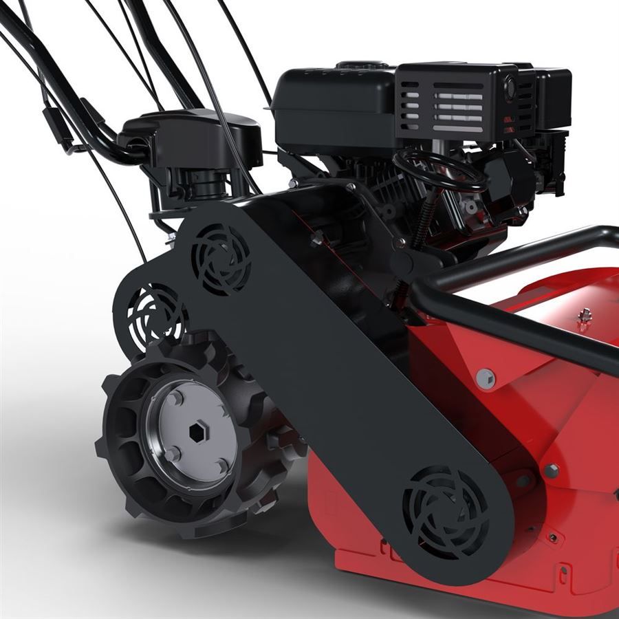• válec s kladívkovými noži, poháněný řemenem • nastavitelná výška sečení 5-40 mm • výškově nastavitelná řídící rukojeť • mechanická převodovka (2 rychlostní stupně vpřed zpátečka) • 4taktní OHV motor • reverzní startovací systém • velká pojezdová kola, odolné pneumatiky z pevné pryže Funkce: Sečení a mulčování |