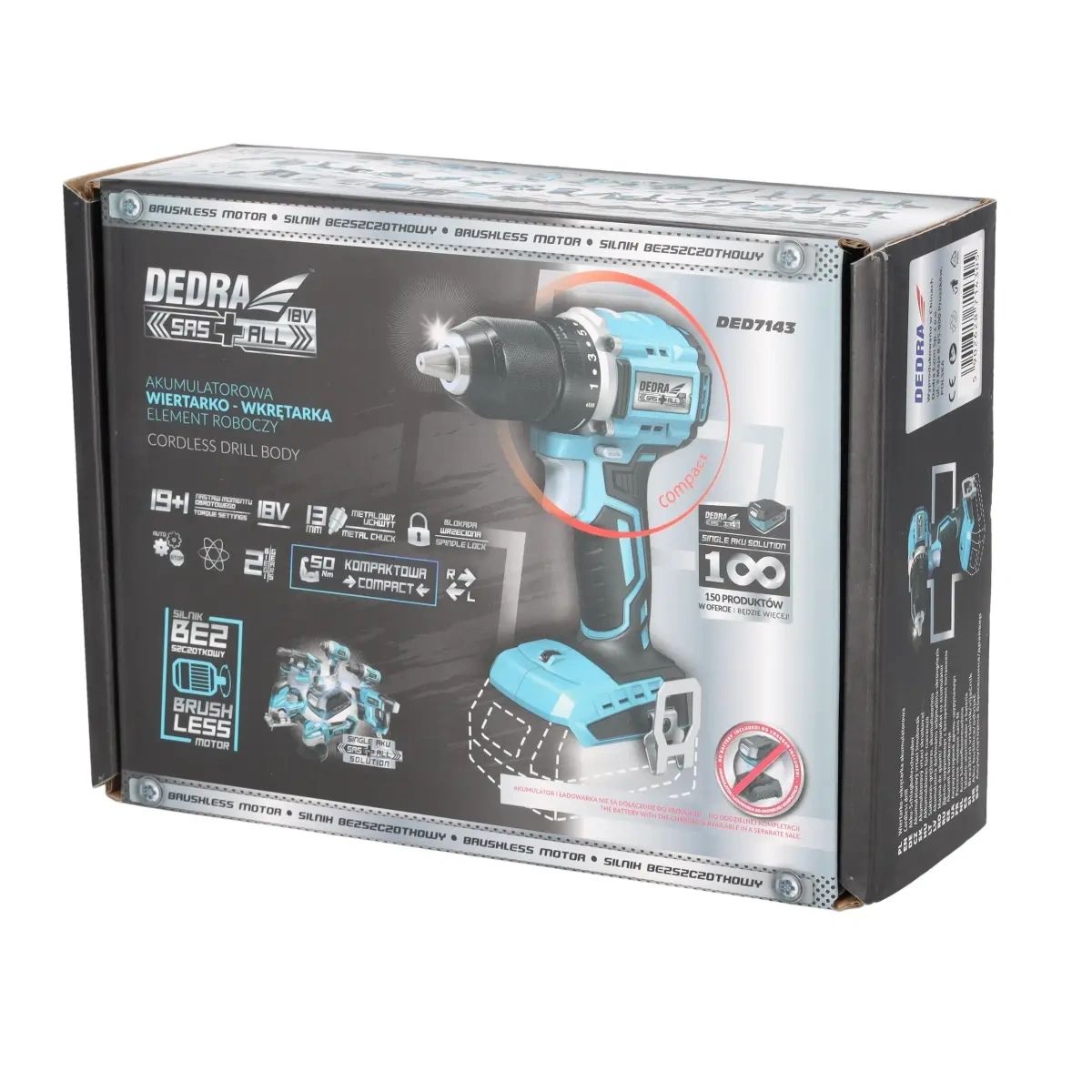 Kompaktní 18V 13mm šroubovák bez příklepu, bezuhlíkový