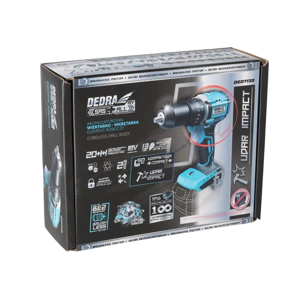 Kompaktní 18V bezkartáčová vrtačka/šroubovák, 13 mm, příklepová vrtačka
