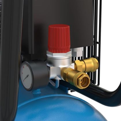 Výkonný kompresor, určený ke stlačování vzduchu za účelem jeho využití v domácích i servisních nebo řemeslnických dílnách.