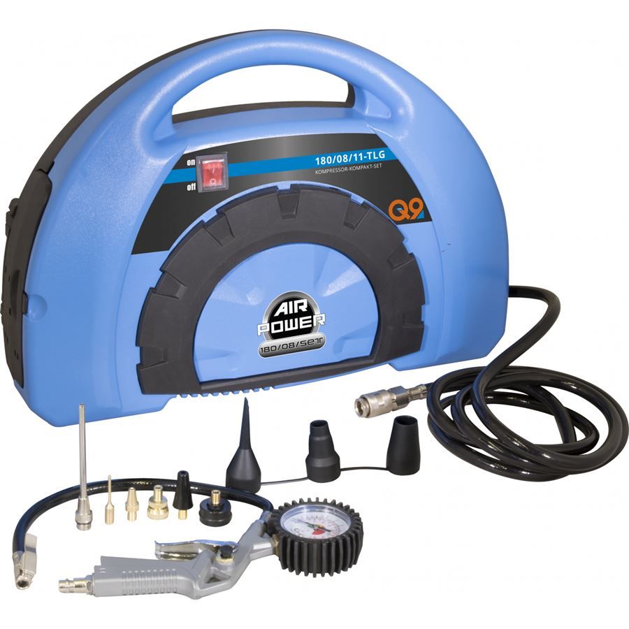 Huštění pneumatik jízdních kol, motocyklů nebo osobních automobilů; nafukování míčů, matrací, bazénů, člunů apod.; vyfukování prachu a drobných nečistot.