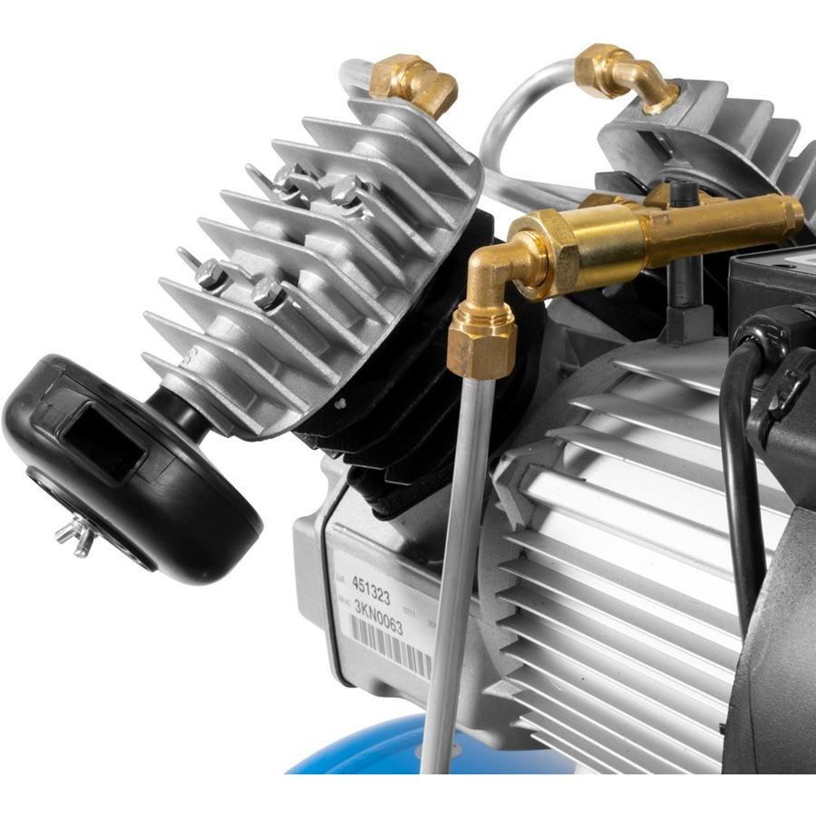 Vybavení: 2 manometry, 2 výstupy tlakového vzduchu (-> kovové rychlospojky), tlakový spínač, redukční ventil, pojistný přetlakový ventil, zpětný ventil, olejoznak, vzduchové filtry (2), 1,8 m přípojný elektrický kabel H07 RN-F.