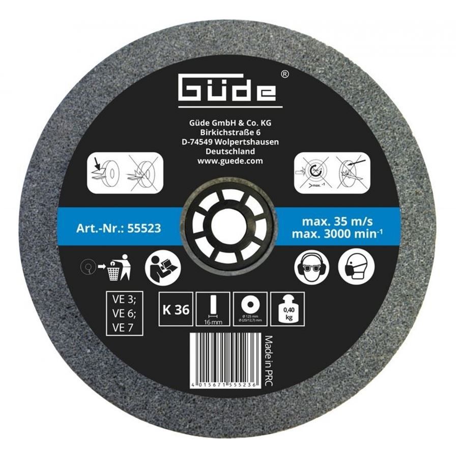 Brusný kotouč GÜDE s integrovaným adaptérem na průměr upnutí 12,7 mm.
