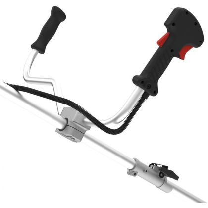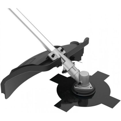 Konstrukce: ergonomicky tvarovaná dvojitá rukojeť (antivibrační, s ovládacími prvky a možností individuálního nastavení), dvoudílná vodicí trubka, pevná hnací hřídel, robustní ochranný kryt struny (kotoučů).