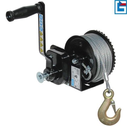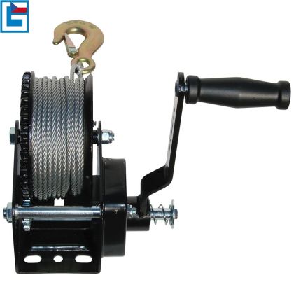 Ruční lanový naviják s integrovanou brzdou, určený k přitahování břemen (-> maximální zatížení v tahu: 720 kg).