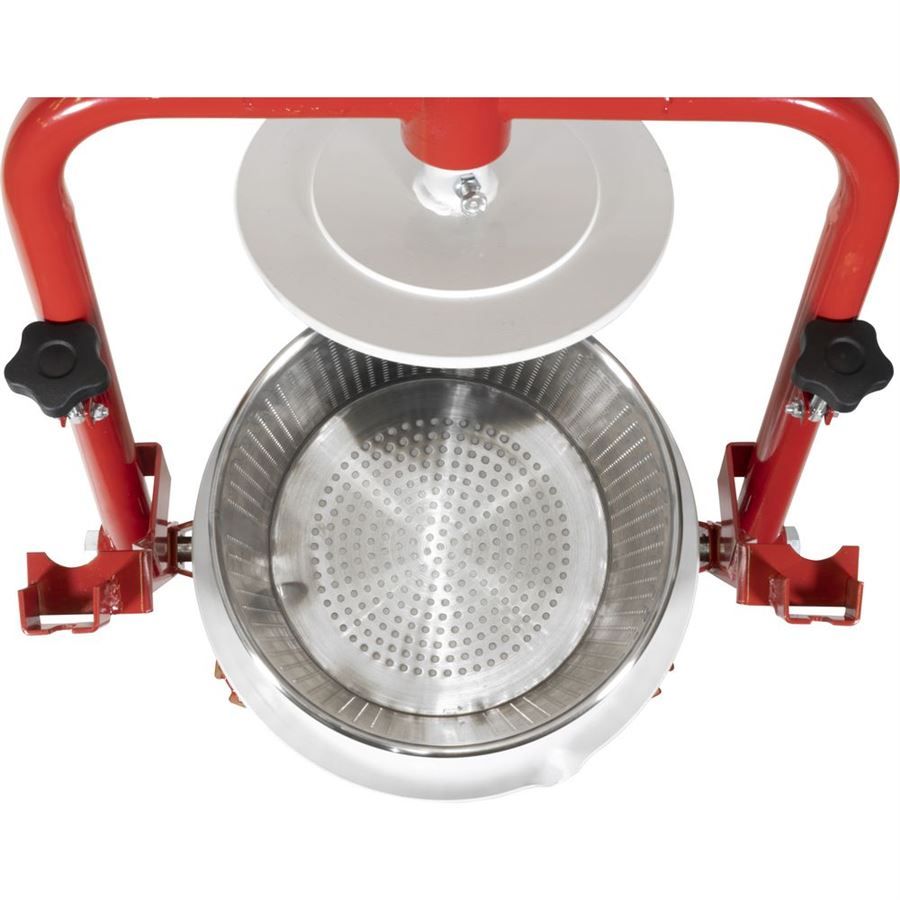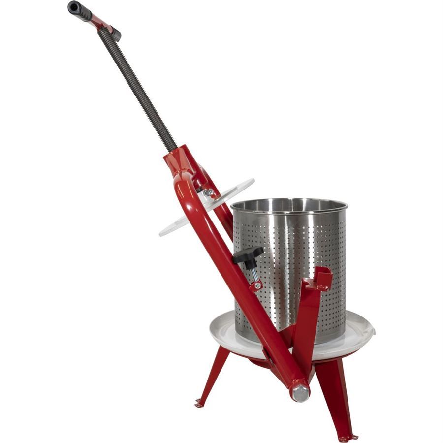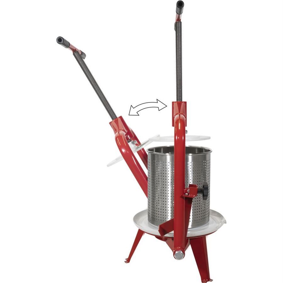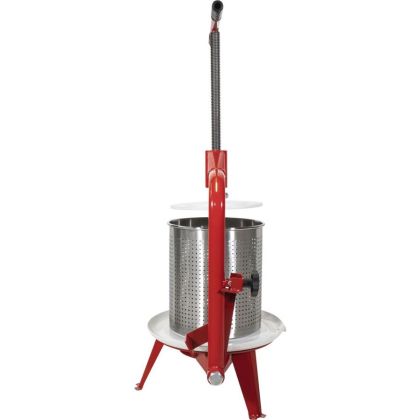 Ruční lis GÜDE, určený k domácí výrobě moštů nebo ovocných štáv.