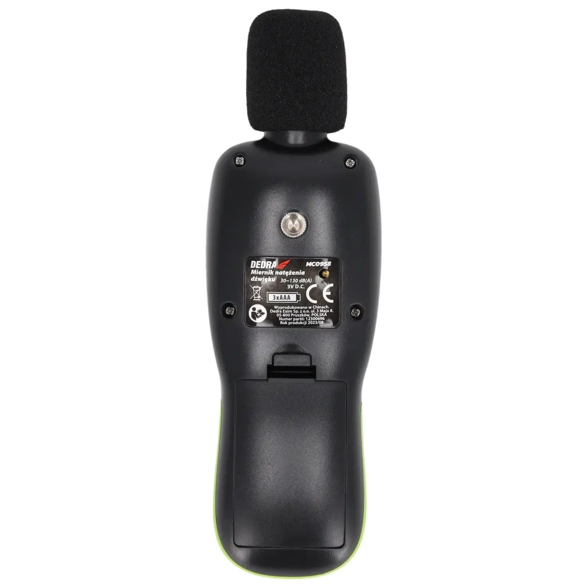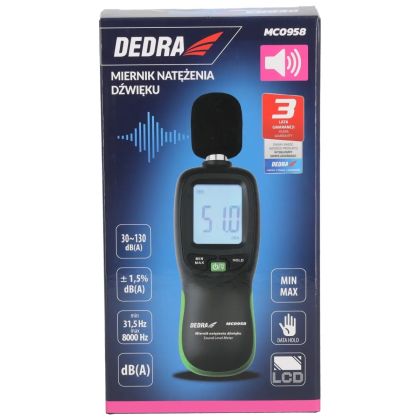 Rozsah měření: 30 ~ 130 dB(A), přesnost měření: ±1,5 dB, měřítko měření: korigované podle korekční křivky A - dB(A), frekvenční rozsah měřeného signálu: Funkce: nejvyšší a nejnižší hodnota aktuálního měření MAX/MIN, alarm překročení nastavené hodnoty (> 82 dB(A)).
