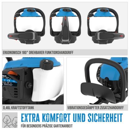 • pohodlné sestřižení vrchní i bočních částí plotů zásluhou 3polohového otáčení zadní rukojeti