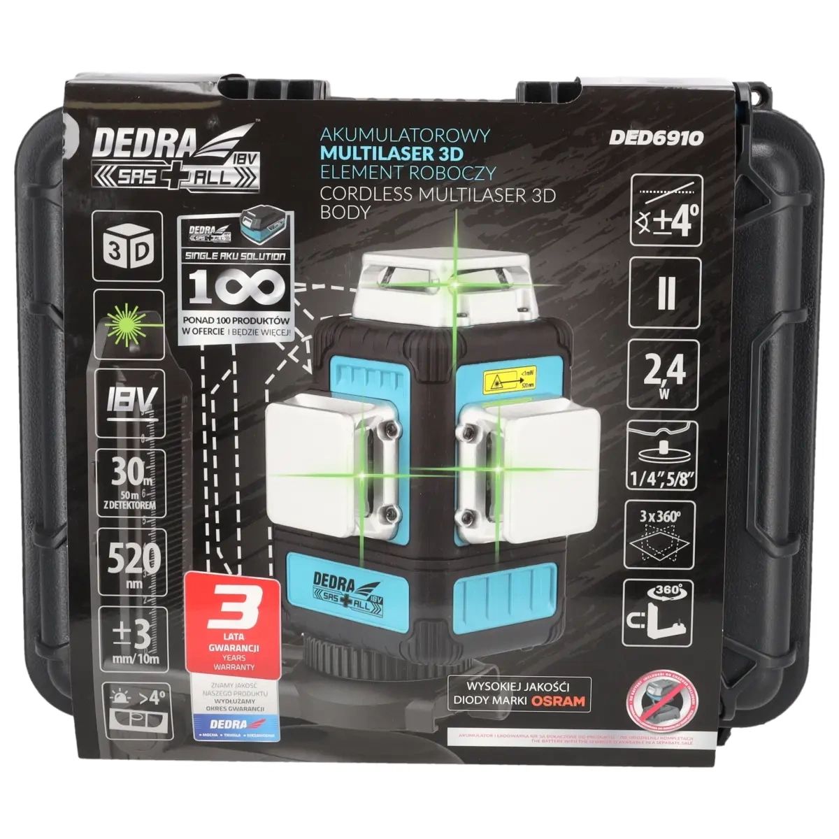 Multilaser 3D 18V, zelený, kufr SAS