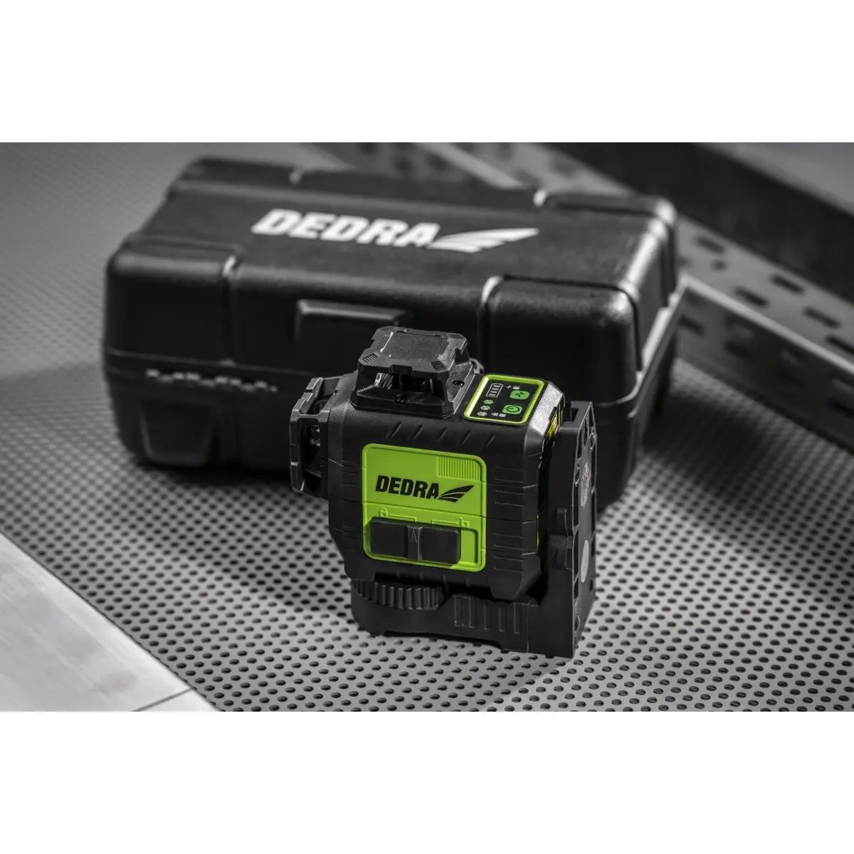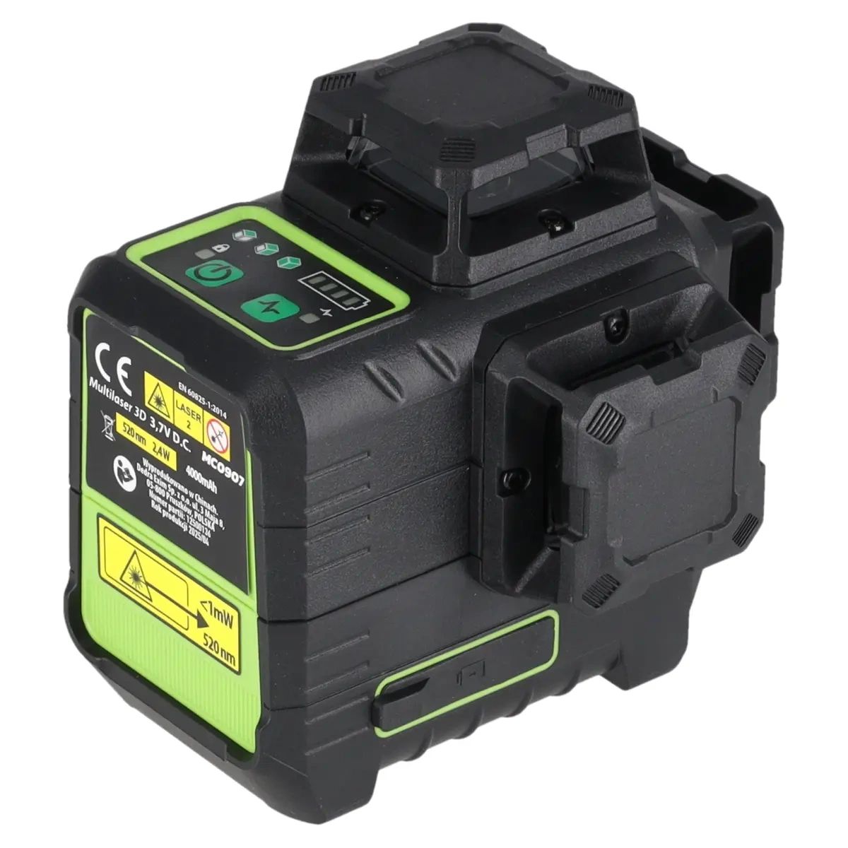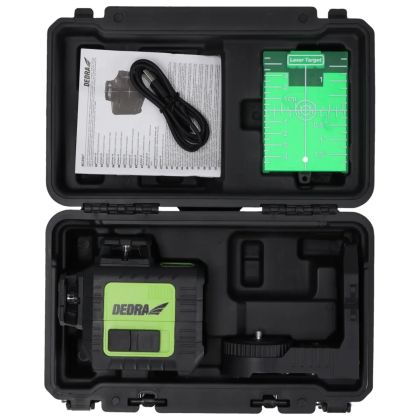 Výkon zařízení: Dosah: 30 m (45 m s detektorem); přesnost laseru: /-3 mm/10 m; vlnová délka: 360°/360°; závit: 5/8\"; napájení: dobíjecí baterie; třída laseru II; pulzní funkce; samonivelační systém; příslušenství je součástí dodávky.