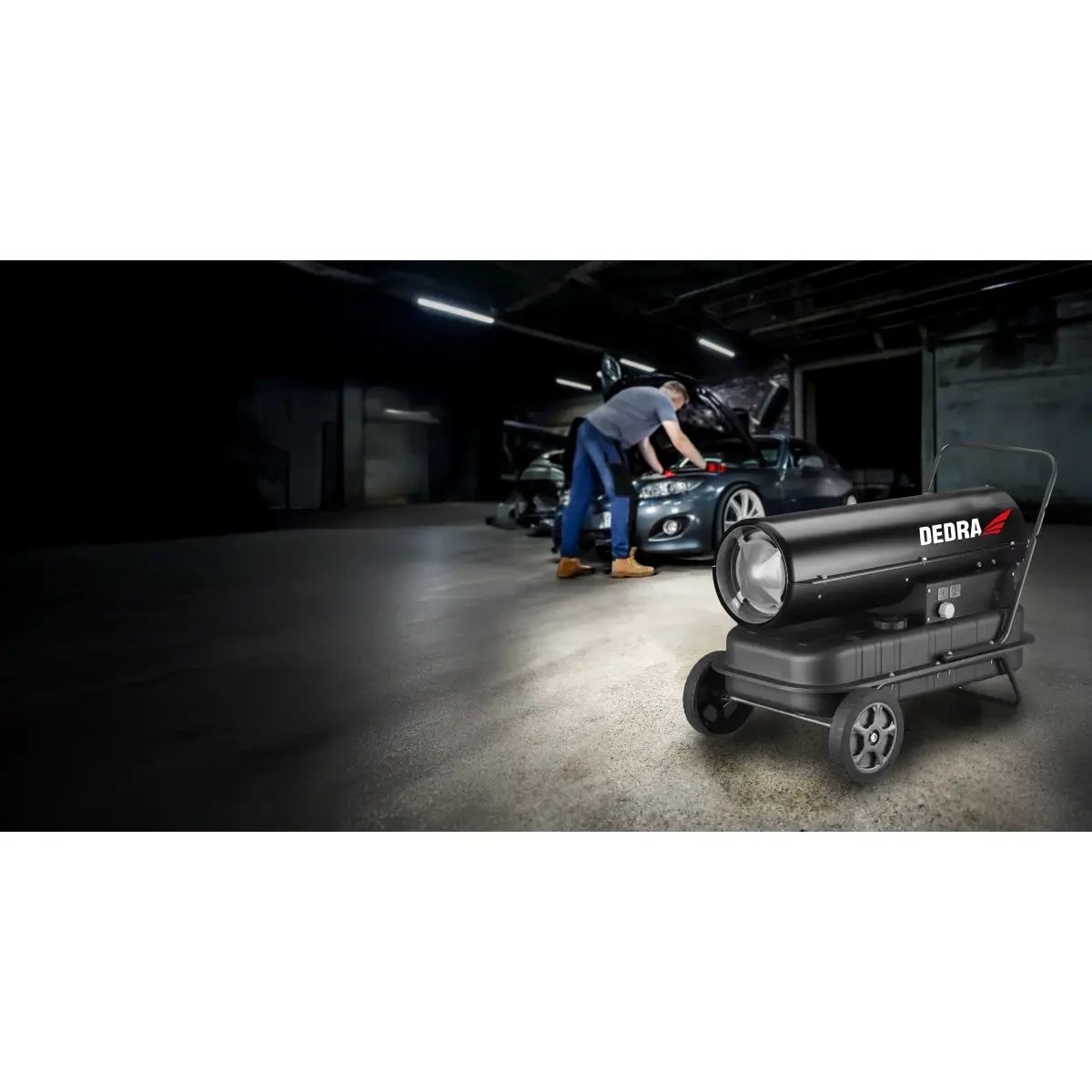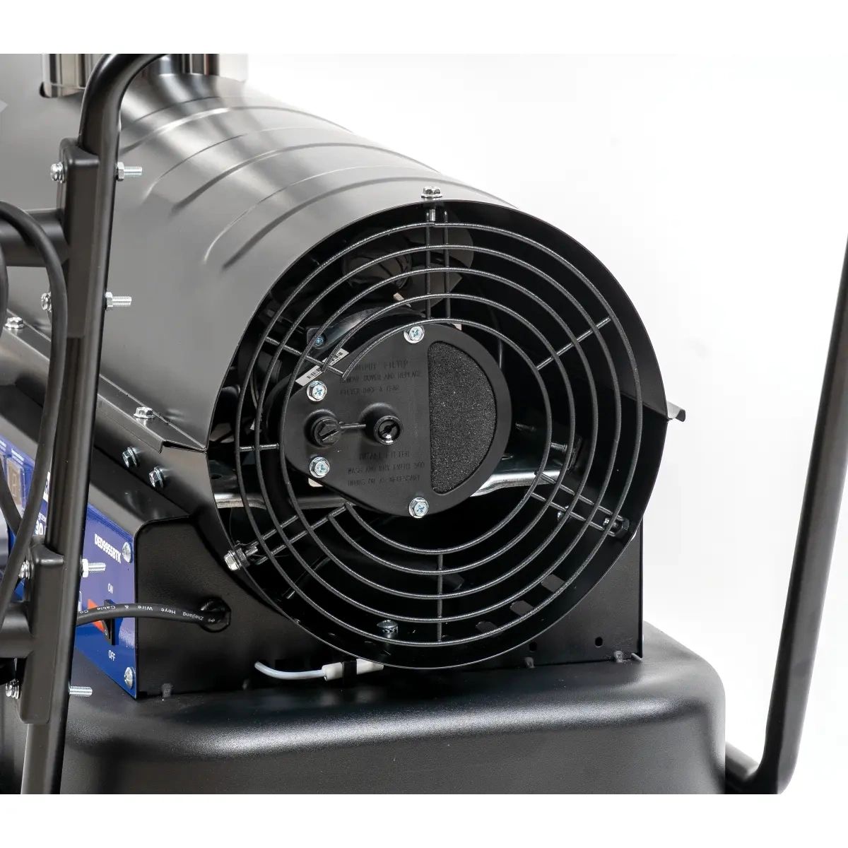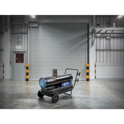 Průtok vzduchu: Napětí: 793 m3/h, kovové pouzdro: 230V/50Hz, zapalování: cívka, palivo: motorová nafta/lehký topný olej, spotřeba paliva: Objem nádrže: 2,4 l/h, objem nádrže: 1,5 l/h: Hmotnost spotřebiče: 50 l: 26,5 kg, vybavení: kolečka rukojeť, 2 displeje: nastavená teplota a naměřená teplota, regulace teploty