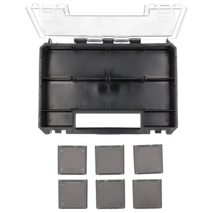 Rozměry 257x182x65 mm, 6 nastavitelných přepážek, polykarbonátové sklíčko, polyamidové spojovací prvky.
