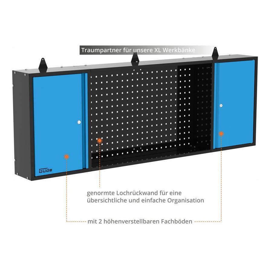 | Tato dvoudveřová nástěnná skříňka s praktickým integrovaným perforovaným panelem je dokonalým doplňkem řady Güde Eco Line, která nyní umožňuje optimálně využít prostor na stěně nad našimi dvěma pracovními stoly XL. - 2 výškově nastavitelné police - Ideální v kombinaci s odpovídajícím pracovním stolem - Standardizovaná perforace: čtvercová, 9 x 9 mm, rozteč otvorů 38 mm - Práškově lakovaný ocelový plech - Dodává se v nesmontovaném stavu Vhodné pro: - 40480 Pracovní stůl GW 6/1 XL - 40481 Pracovní stůl GW 6/2 XL - 40464 Sada perforovaných panelů GL 1709 XL Volitelné příslušenství: - 40768 Sada držáků nástrojů 28 ks. Všechny držáky nástrojů a háčky jsou vhodné pro perforované stěny a systémy Güde se čtvercem otvorů 10 x 10 / 9 x 9 mm a osovou vzdáleností otvorů 38 mm. |