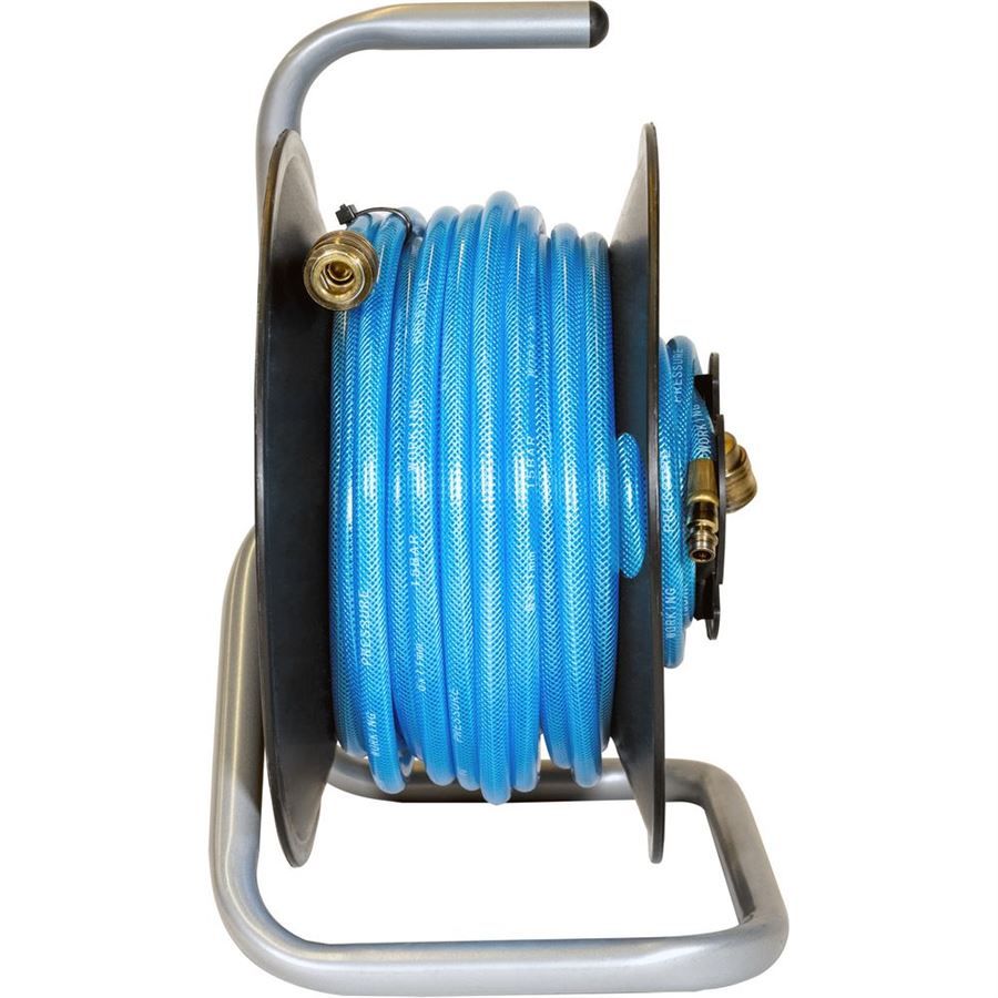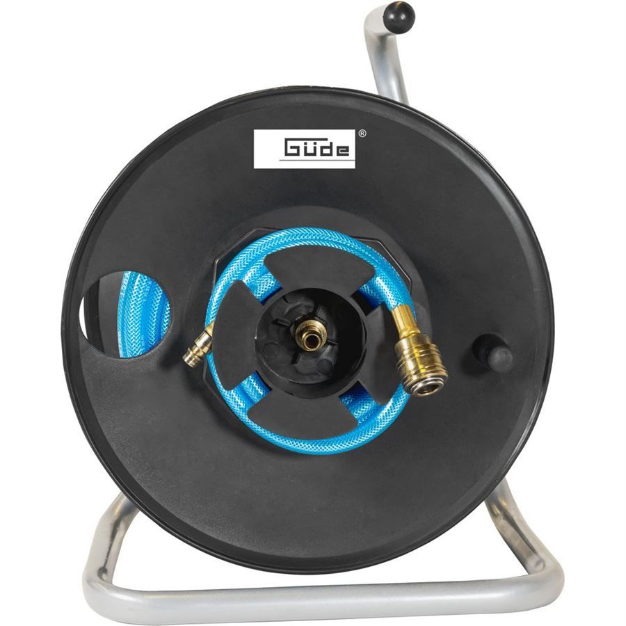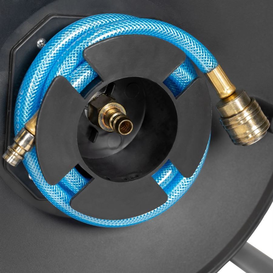 Přenosný hadicový naviják, určený k uskladnění tlakové hadice/operativnímu zásobování vzdálenějšího pracoviště stlačeným vzduchem. Tlaková hadice s textilní vložkou (→ délka: 20 m, včetně rychlospojky/vsuvky integrované do bubnu), spojovací hadice (→ délka: 0,5 m, s koncovkami pro připojení ke kompresoru), manuální navíjení pomocí kliky. Konstrukce: stabilní trubkový rám, navíjecí buben z tvrzeného plastu.