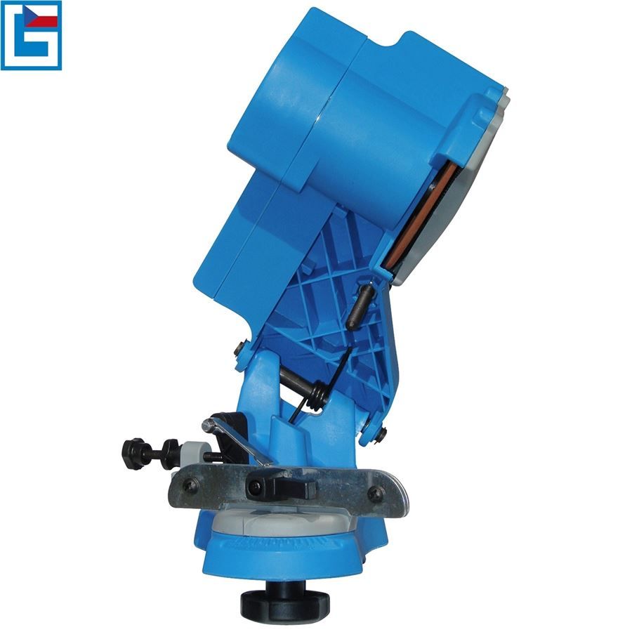Praktická ostřička pilových řetězů GÜDE, určená k broušení všech běžně používaných typů řetězů elektrických i motorových pil.