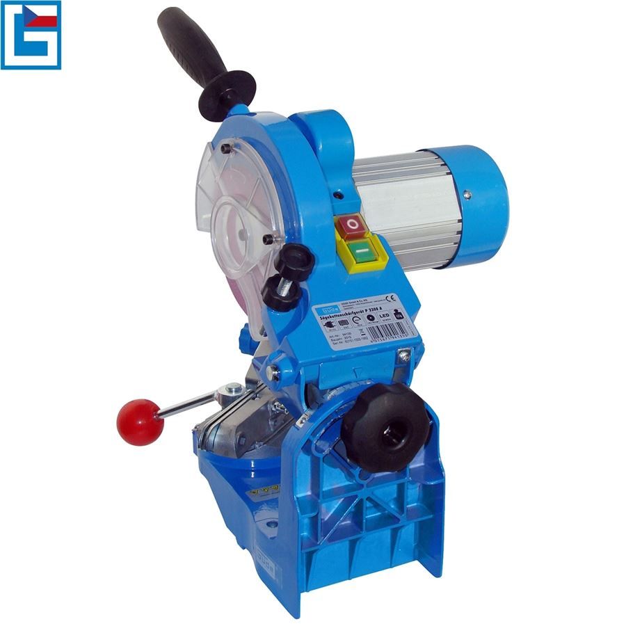 Spolehlivá ostřička pilových řetězů GÜDE, určená k broušení všech běžně používaných typů řetězů elektrických i motorových pil.