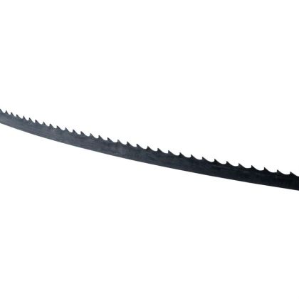 Rozvedený pilový pás z uhlíkové oceli, určený k řezání dřeva (-> podélné řezy/oblé křivky s většími poloměry).