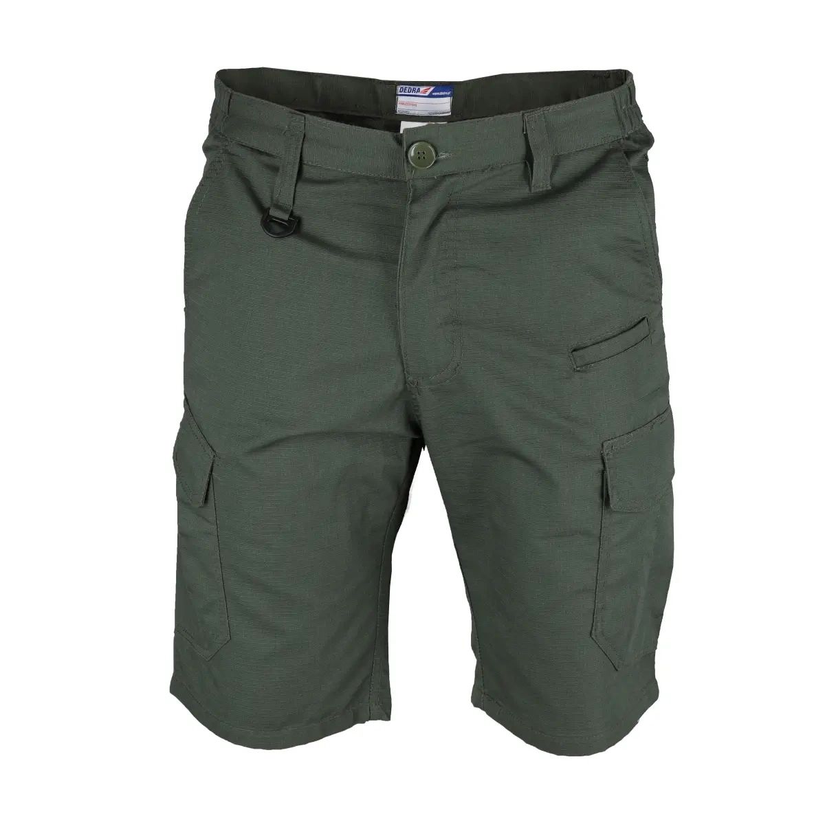 Materiál: ripstop 63 % polyester 35 % bavlna 2 % spandex, hmotnost 220 g/m²; 9 kapes, z toho 2 velké otevřené kapsy na horní straně, 2 vícenásobné kapsy na bocích, 2 zadní kapsy s přídavnými klopami na suchý zip, všitá guma na obou stranách pasu, 5 poutek na opasek, z toho 4 standardní šířky a 1 široká vzadu, plastový kroužek na klíče.