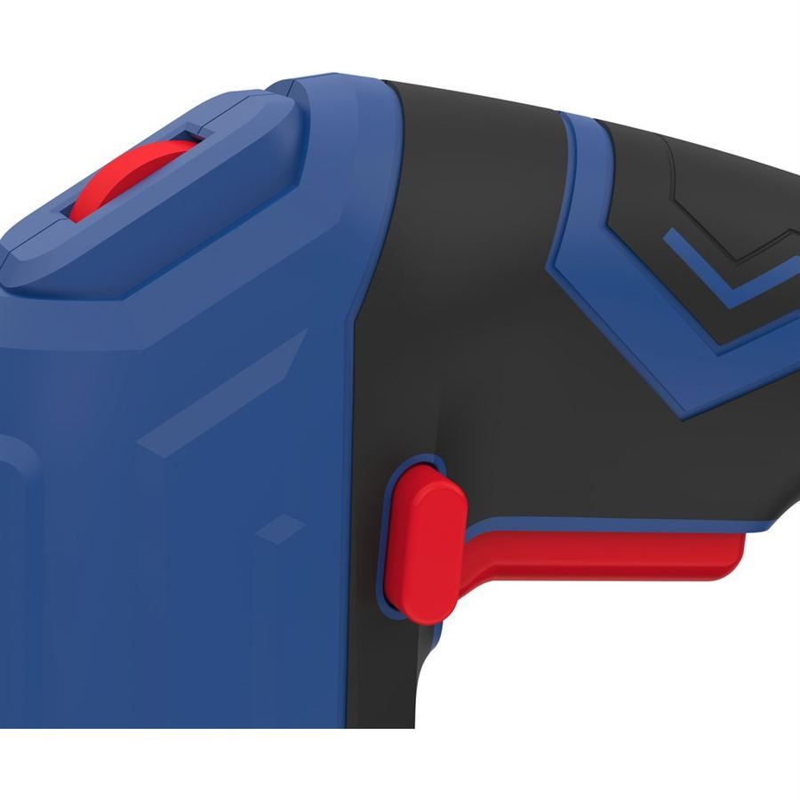 Ergonomicky tvarovaná rukojeť s měkkým úchopem, aretační vypínač pro nepřetržitý provoz.