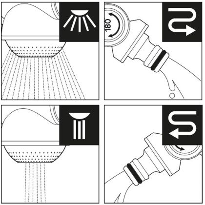 1/2\"-3/4\" úhlová přípojka: 360°, 180°. Umožňuje beznástrojové nastavení dvou vodovodních potrubí. Vyrobeno z pevného plastu ABS a plastu POM.