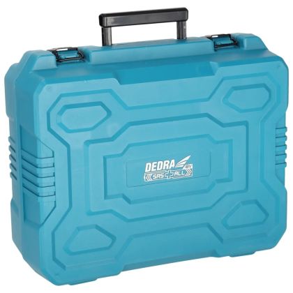 Součástí dodávky: 18V úhlová bruska DED7050, 2x 4,0Ah 18V Li-Ion akumulátor DED7034, nabíječka DED7038, kufr BMC.