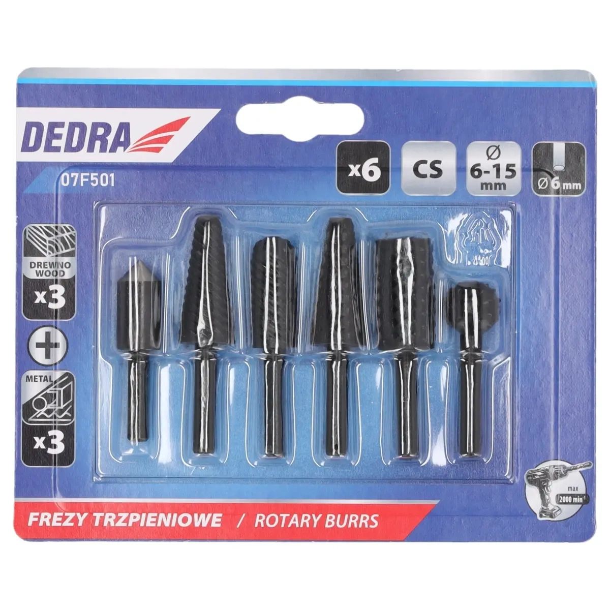 Materiál: CS ocel, max. otáčky: Průměr stopky 6 mm, pro použití s vrtačkami a šroubováky, použití: měkké kovy (např. hliník, měď) dřevo, sada 6 ks.