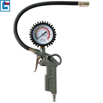 Konstrukce: pistole/hustilka z tlakově litého hliníku, manometr pr. 60 mm s gumovou ochranou, ventilová zástrčka Michelin, 5 m spirálová hadice z polyuretanu včetně vsuvky/rychlospojky.