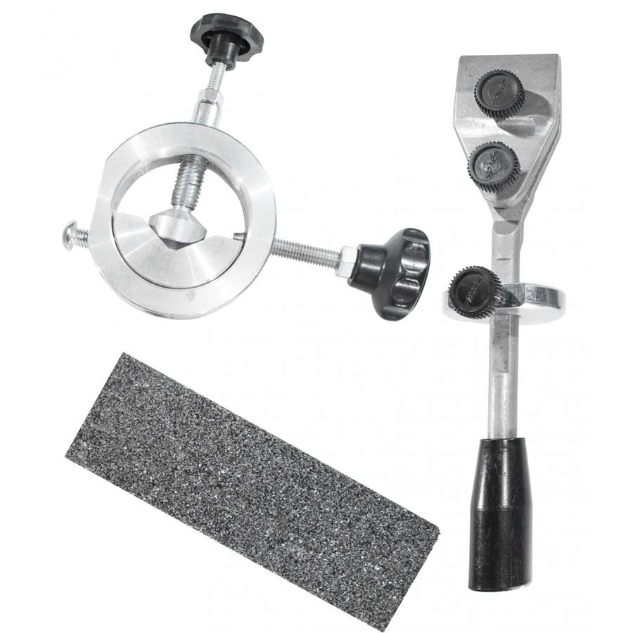 Upínací pouzdra, určená pro přesné nabroušení nožů (s kratší čepelí) a hoblíků; brusný kámen ke srovnání korundového kotouče.