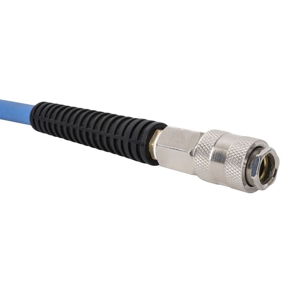 10m vzduchová hadice s rychlospojkou a stavěcí zarážkou • hybridní (vícevrstvá), mimořádně pružná, ohýbatelná, odolná proti výkyvům teplot i přejetí automobilem.